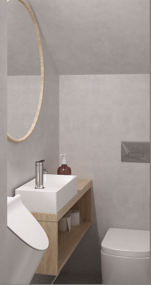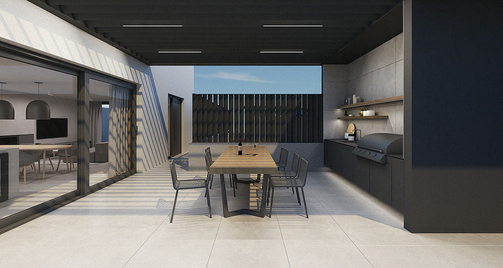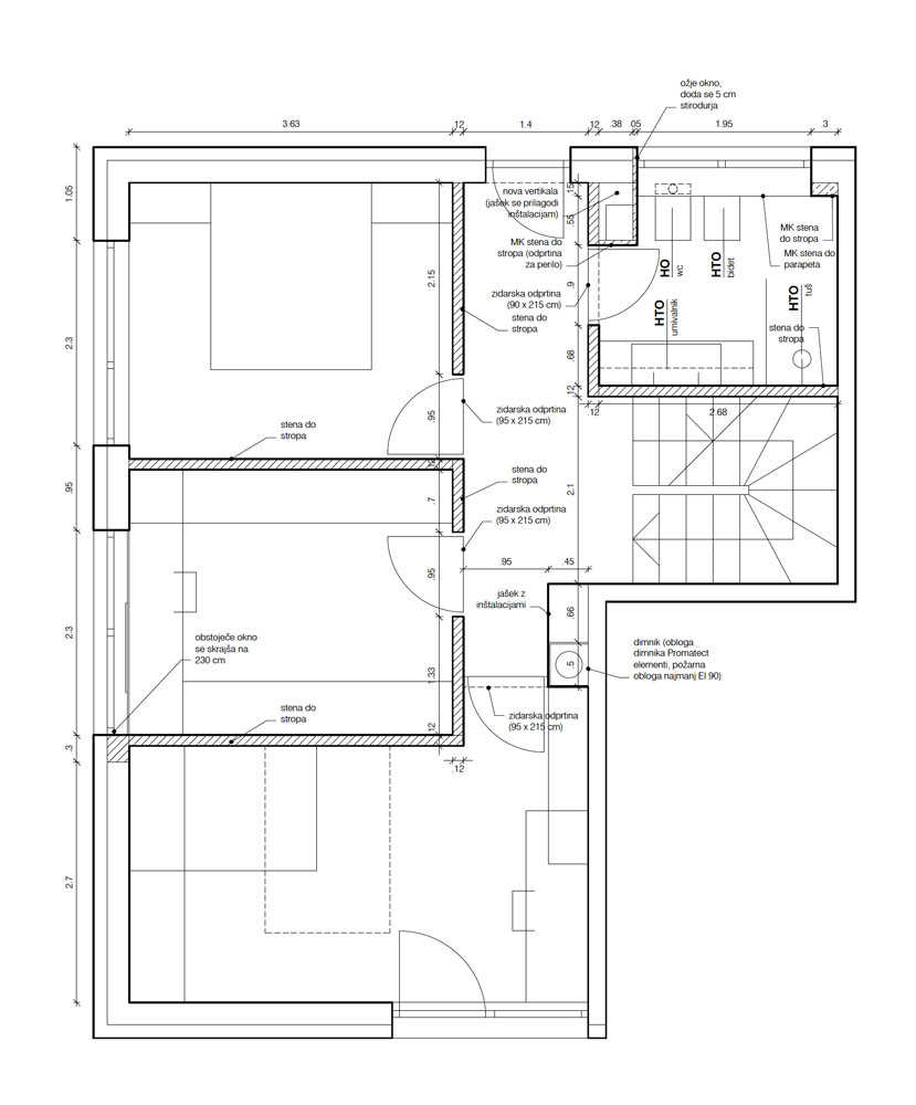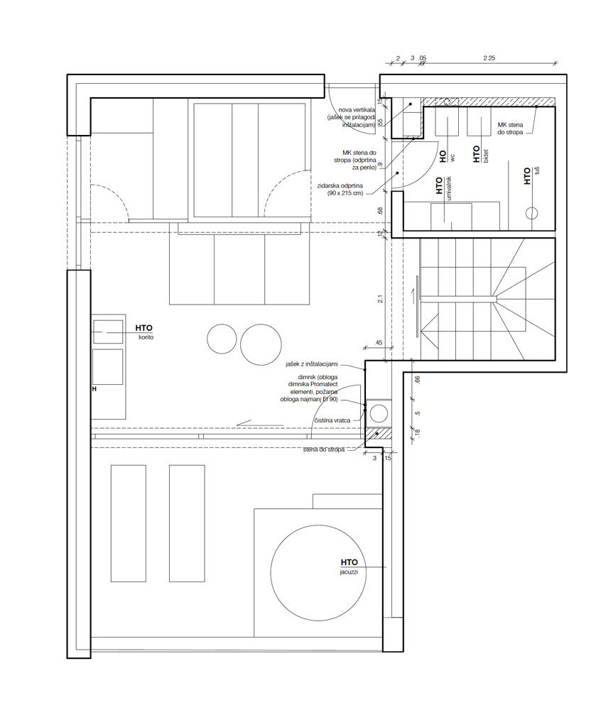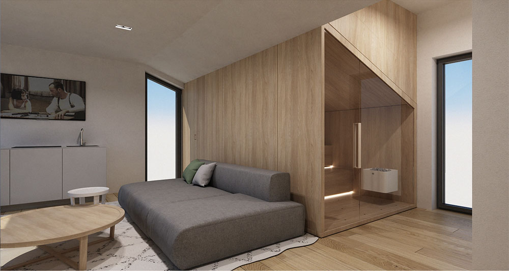 Hiša ima 175,9 m2 bruto tlorisne površine, 136 m2 je zunanjih teras in vrta, v kleti objekta pa se nahajajo še 3 parkirna mesta ter shramba v skupni izmeri 62m2. Dnevni prostori se nahajajo v pritličju in so z večjimi steklenimi drsnimi stenami odprti na južno in zahodno stran. Tako se lahko dnevna v poletnih mesecih podaljša na J teraso, iz kuhinje pa lahko neposredno stopimo v letno kuhinjo, kar omogoča popolno izkoriščenost zunanjega prostora. V 1.nadstropju se nahajajo spalnica, otroška soba, garderobna soba, ki je laho tudi druga otroška soba in kopalnica. V mansardi pa je predviden relax kotiček z infra sauno in jacuzzijem na terasi.