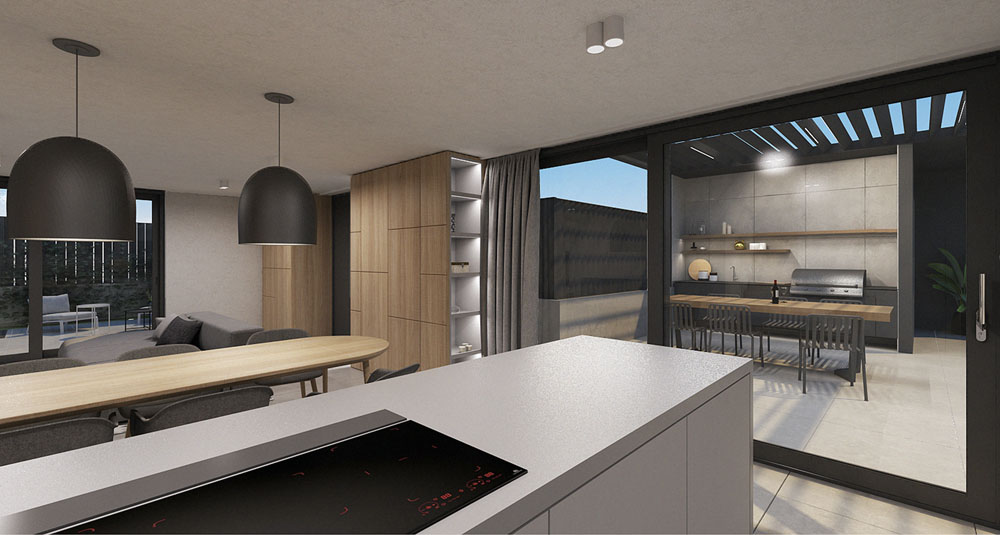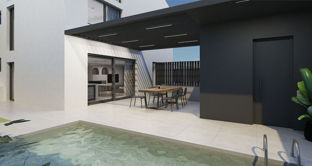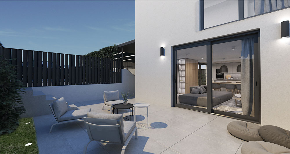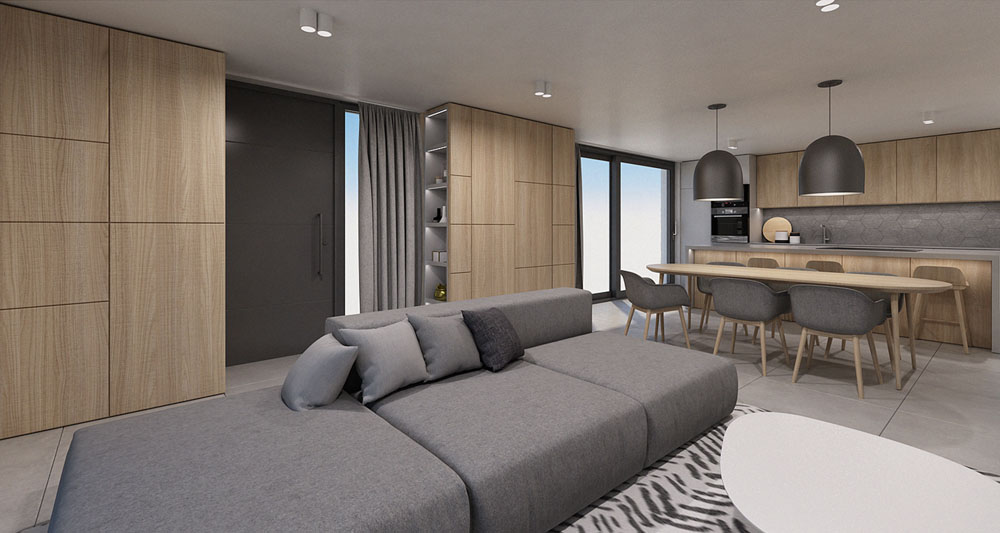 V neposredni bližini centra Izole smo leta 2015 kupili 2 parceli na katerih smo kasneje zgradili dvojčka oz. 4 vrstne hiše. Objekt se nahaja na Prešernovi ulici, ki je odlično izhodišče za vse ključne točke v Izoli in njeni okolici, kot so trgovina, zdravstveni dom, šola, plaža, saj so dostopne le v nekaj minutah peš, zato je primeren prav za vsakogar, ki si želi življenja v mestu, vseeno pa imeti dovolj zasebnosti. Želeli smo si moderen objekt po izgledu, vendar praktičen in domač za uporabo. Skupaj z arhitekti smo se približali idealni nastanitvi za večjo družino, saj hišaponuja veliko družabenega prostora tako znotraj kot zunaj, hkrati pa se lahko vsak posameznik umakne v svoj initimen prostor.