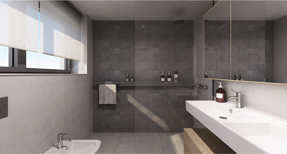 Hiša ponuja maksimalno ugodje tudi kar se tiče uporabljenih materialov in vgrajenih inštalacij. Aluminjasta okna s troslojnim steklom so odlična termična in akustična zaščita, avtomatske zunanje žaluzije z upravljanjem preko pametne inštalacije ali telefona, pa še dodatno zaščitijo okna in dodajo eleganten izgled hiši. Talno gretje bo poskrbelo, da vas ne bo zeblo, prezračevalni sistem speljan po celotni hiši pa bo poskrbel, da boste imeli vedno svež dovod zraka v vseh prostorih.